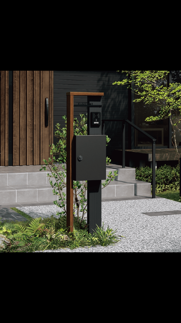 表札、インターホン、ポストを備えたスタンダードな機能ポールです。