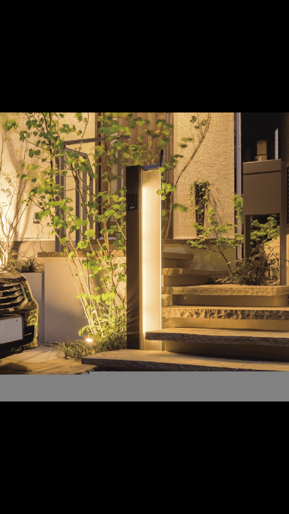 夜の玄関まわりを温かみのあるLEDライティングで演出できます。