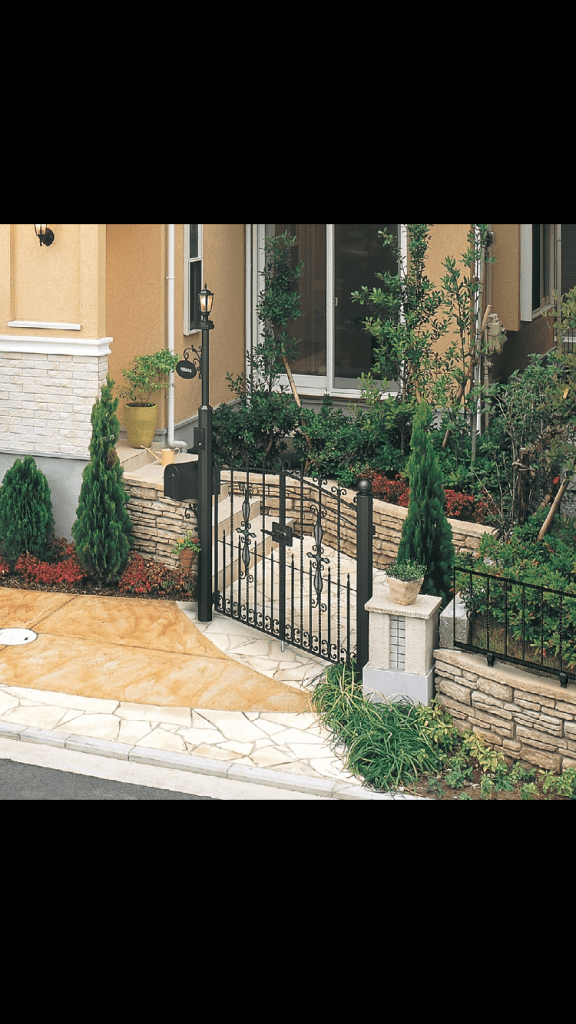 ヨーロッパの伝統的な街灯をイメージした鋳物の門柱。