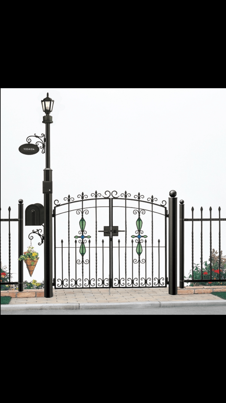 ヨーロッパの伝統的な街灯をイメージした鋳物の門柱。