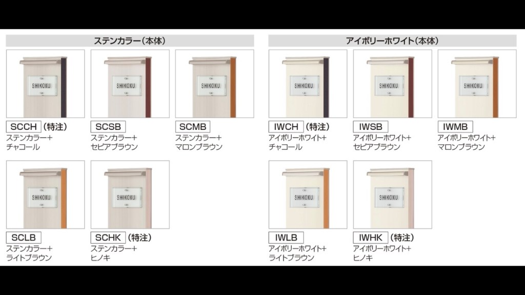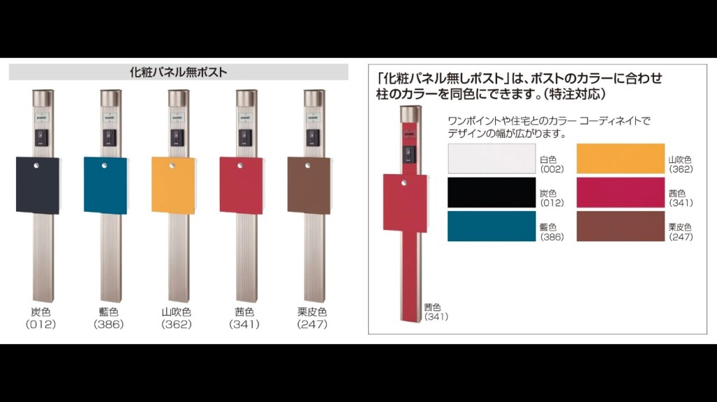 ポストカラーはステンカラーかアイボリーで合わせるか、あえてマットブラウンにして変化を出すか。