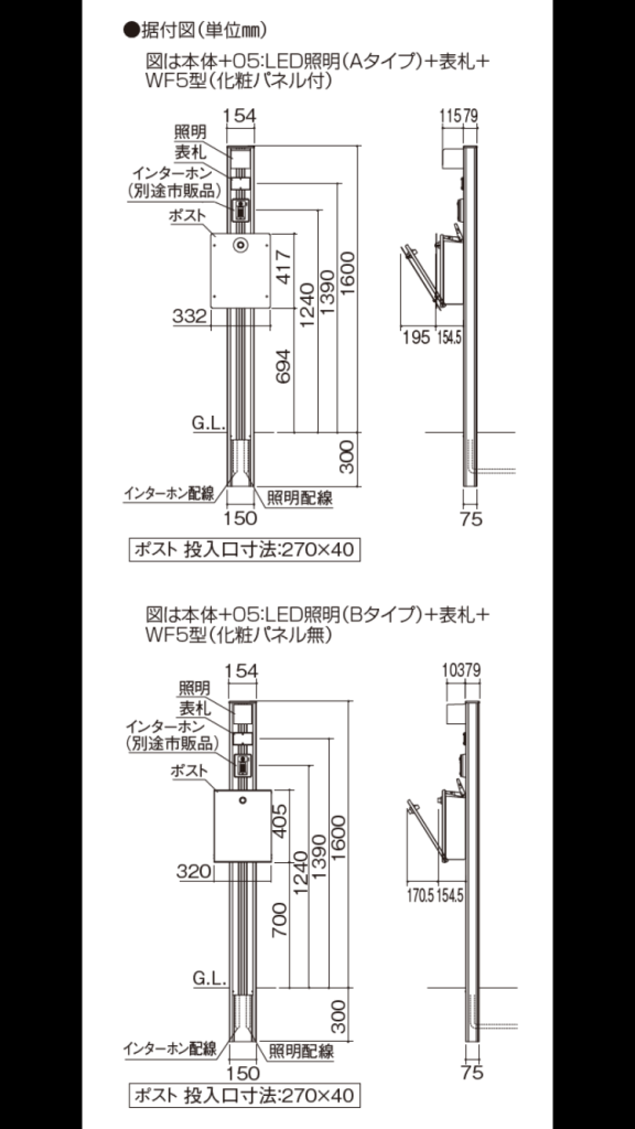 横幅154の高さ1600。かなりシャープな門柱です。